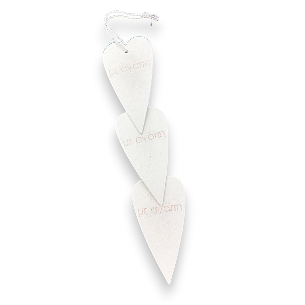 ΛΕ8Τ | ΤΡΙΠΛΕΣ ΚΡΕΜΑΣΤΕΣ ΛΕΥΚΕΣ ΚΑΡΔΟΥΛΕΣ ΤΥΠΩΜΕΝΕΣ ΜΕ GLITTER: “Με αγάπη”‘