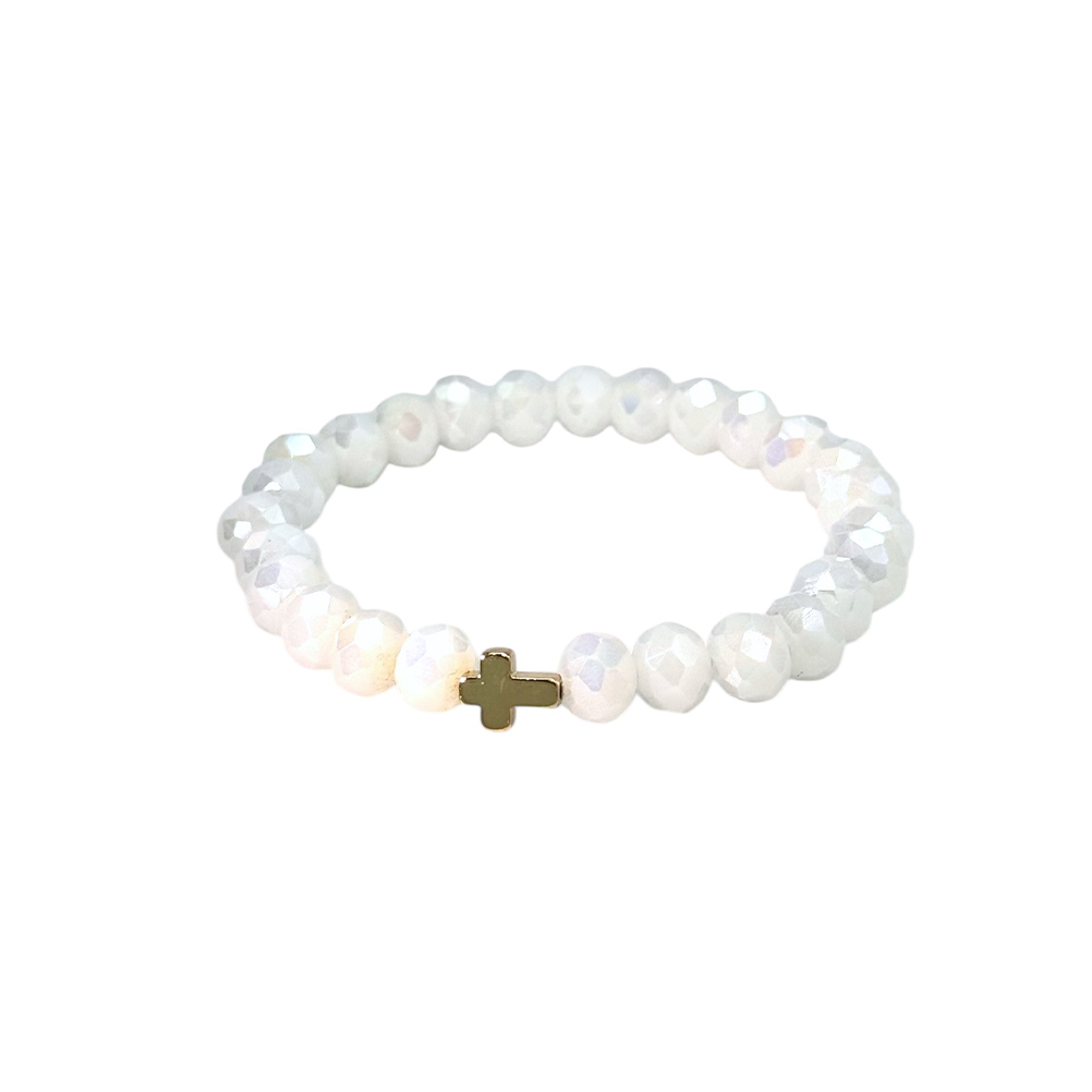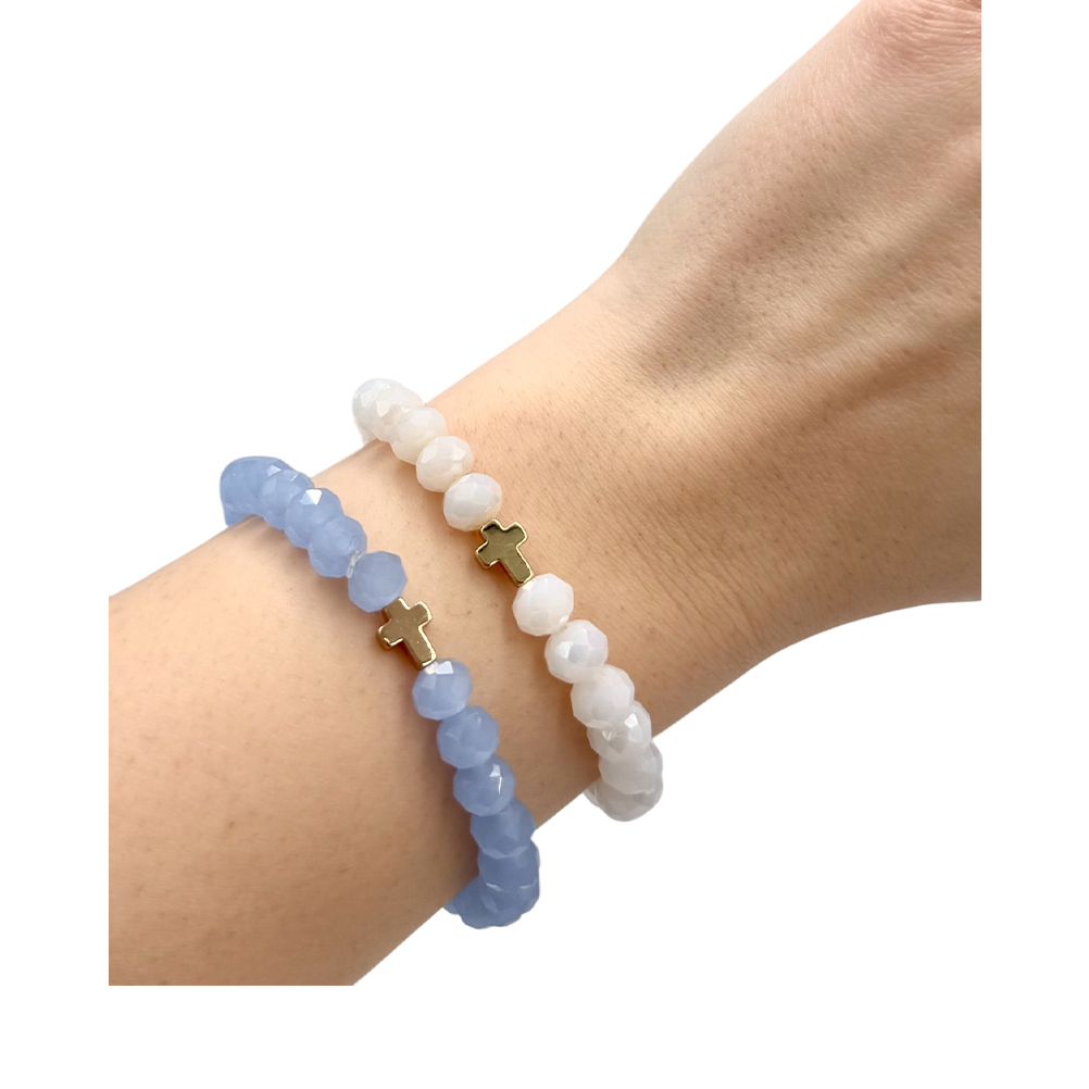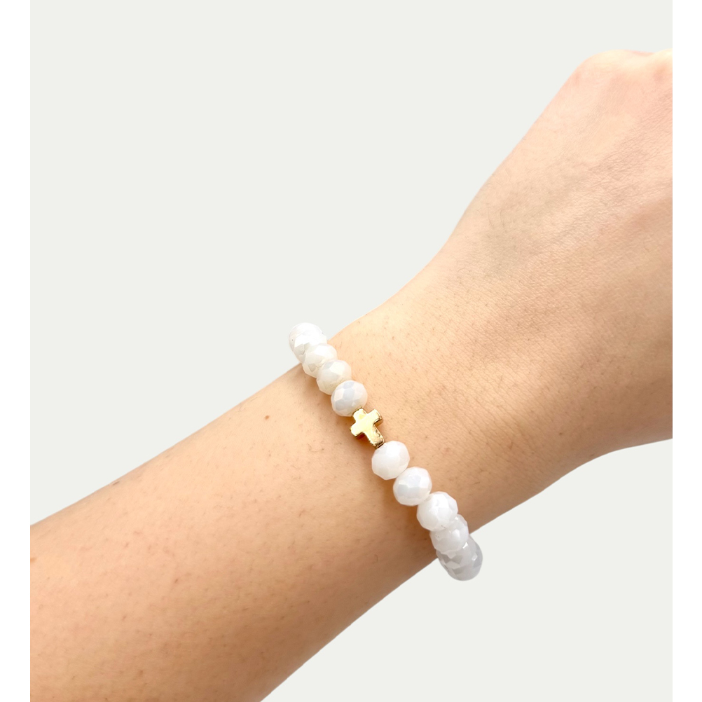 ΜΑΡ18Λ | ΛΕΥΚΟ ΒΡΑΧΙΟΛΙ ΕΛΑΣΤΙΚΟ ΜΕ ΗΜΙΠΟΛΥΤΙΜΕΣ ΠΕΤΡΕΣ & ΣΤΑΥΡΟΥΔΑΚΙ