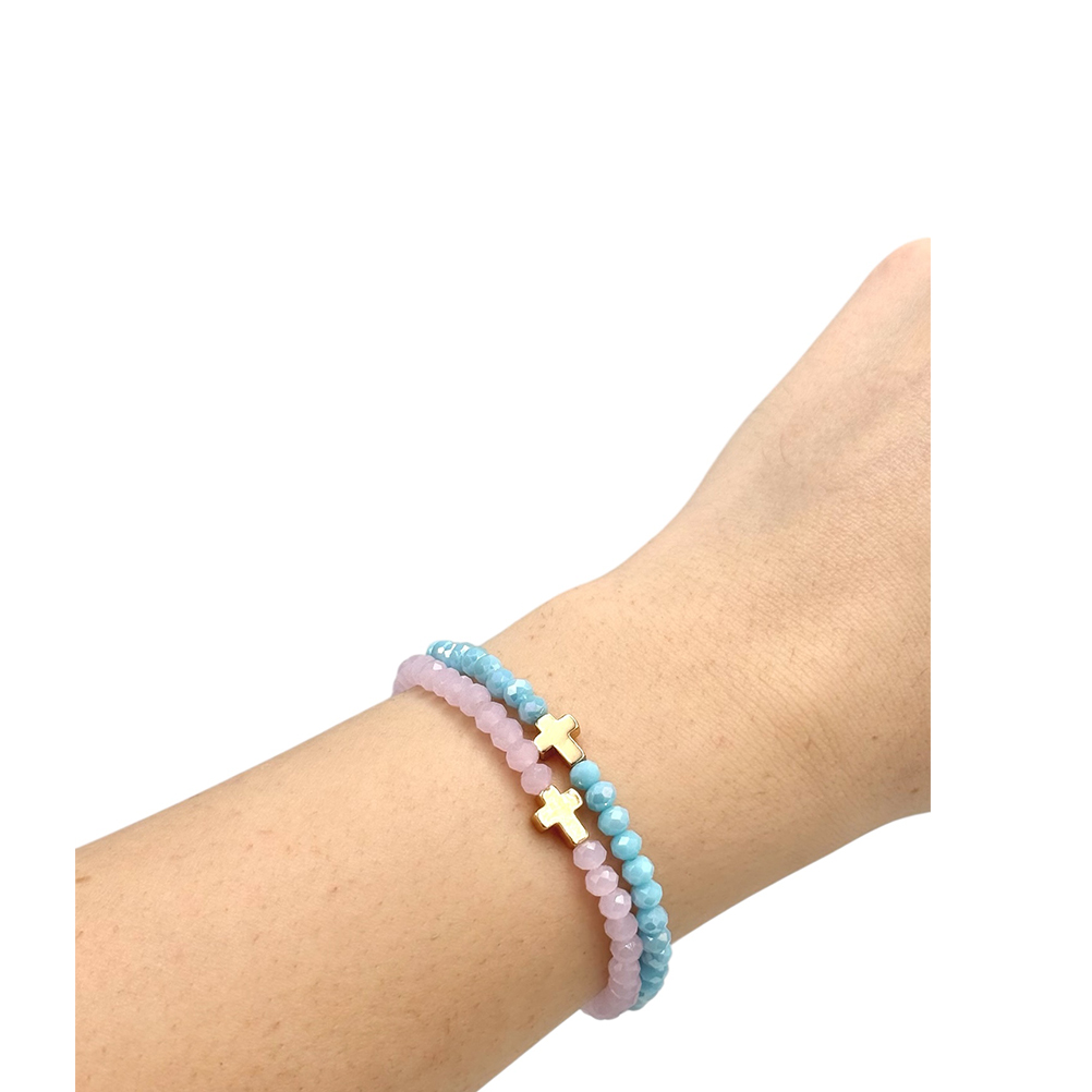 ΜΑΡ20Ρ | ΡΟΖ ΒΡΑΧΙΟΛΙ ΕΛΑΣΤΙΚΟ ΜΕ ΗΜΙΠΟΛΥΤΙΜΕΣ ΠΕΤΡΕΣ & ΣΤΑΥΡΟΥΔΑΚΙ