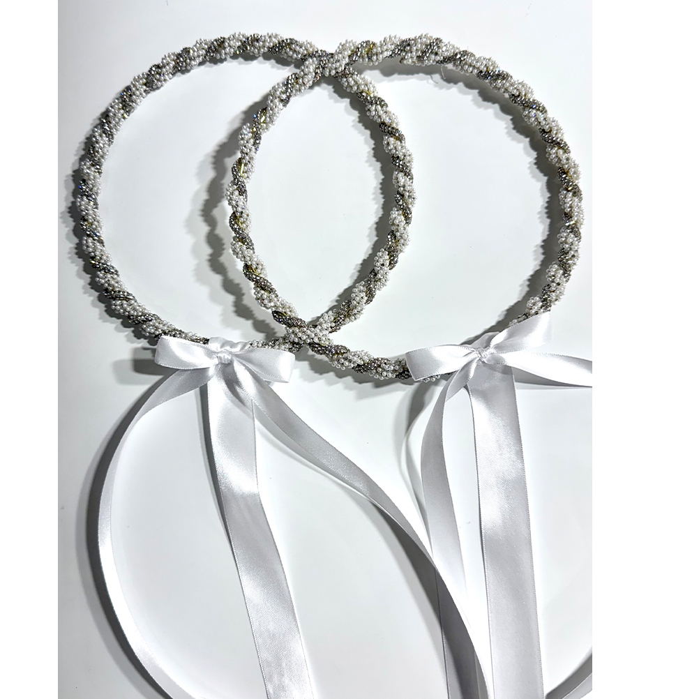 ΣΤ412 | ΣΤΕΦΑΝΑ ΜΕ ΣΤΡΑΣ ΚΑΙ ΠΕΡΛΕΣ ΜΕ ΛΕΥΚΗ ΣΑΤΕΝ ΚΟΡΔΕΛΑ